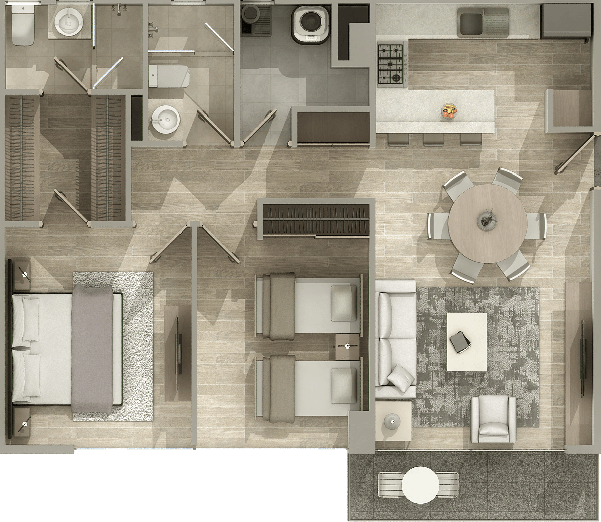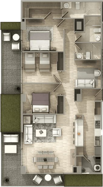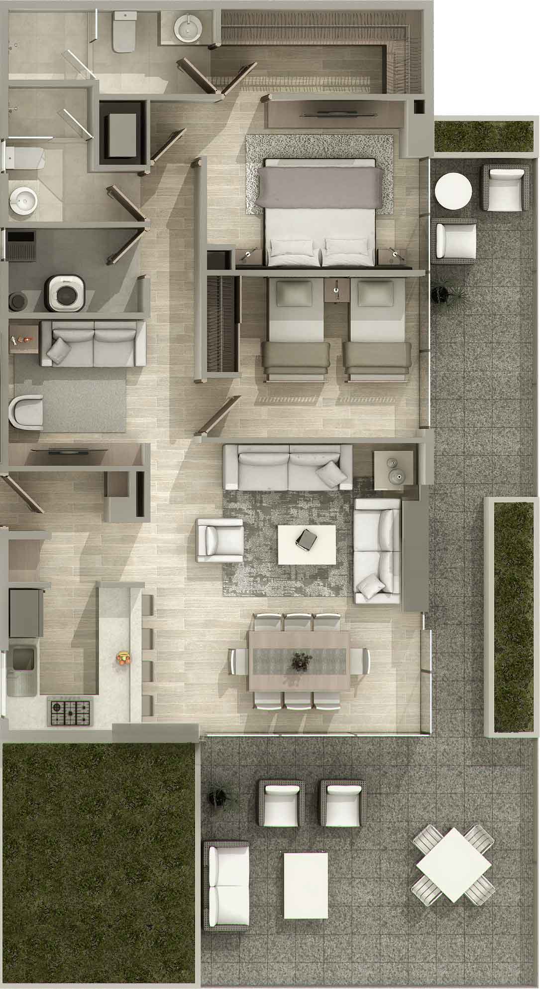 - Diseño de vanguardia que permite la creación de balcones y terrazas.